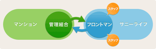 サニーライフでは、お客様に満足していただけるコミュニケーションを保つため、フロントマンの担当棟数を10棟程度に制限し、さらに社内チームで皆様のマンション・ライフを全面的にバックアップいたします。